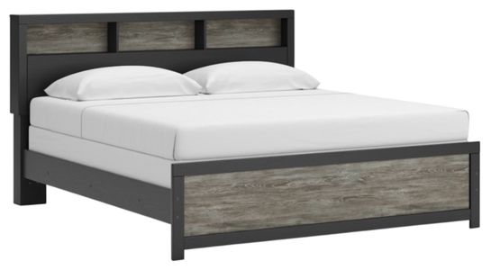 The Broachmyn King bookcase bed blends utility with bold, charm. Its spacious headboard features open shelving ideal for books, décor, or nighttime essentials, while the black and gray finish adds a sleek, contemporary edge. Designed for both style and function, this bed elevates any bedroom with its commanding presence and practical storage.Read More