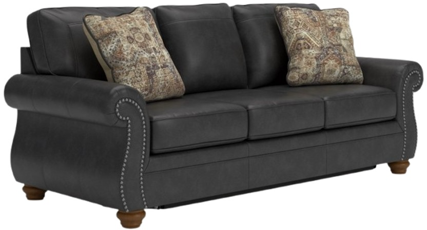 Everyone can have the best rest in the house with this queen sofa sleeper. Its nailhead trim puts the finishing touches on the traditional roll arms you love. The sofa's comfy, durable cushions—wrapped in a rustic yet sophisticated faux leather—keep you feeling relaxed, while its turned legs show that style and quality flow from top to bottom.Read More