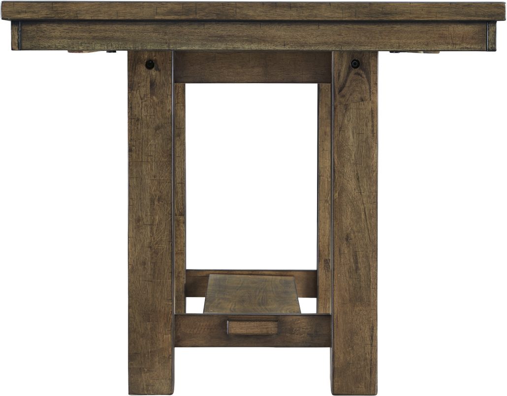 This dining room extension table elevates the art of casual rustic style. Clean-lined, farmhouse profile is beautified with a distressed nutmeg finish and thick planked effect top for added charm. And with not one but two drop-in leaves, you can easily accommodate eight with plenty of elbow room.Read More