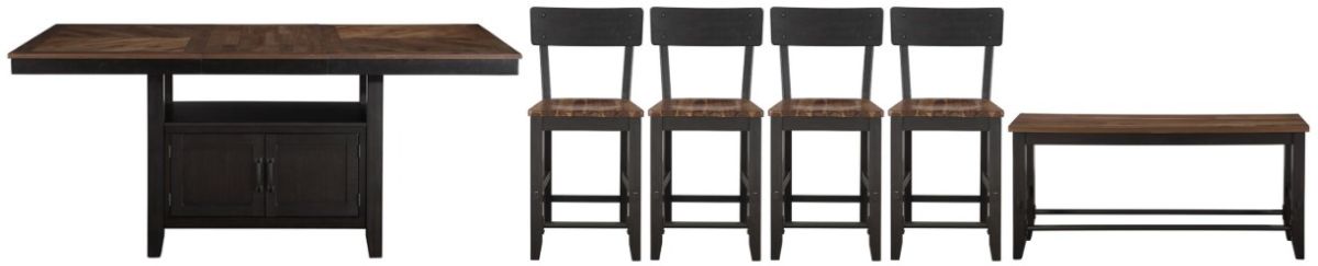 Elevate your dining space with the Bermuda 6-piece counter dining set. This set includes a table and four counter chairs blending modern farmhouse style with contemporary elegance. Featuring black and dark acacia finishes the 36-inch high table is versatile for dining or working with a 20-inch leaf that expands it from 60 to 80 inches.Read More