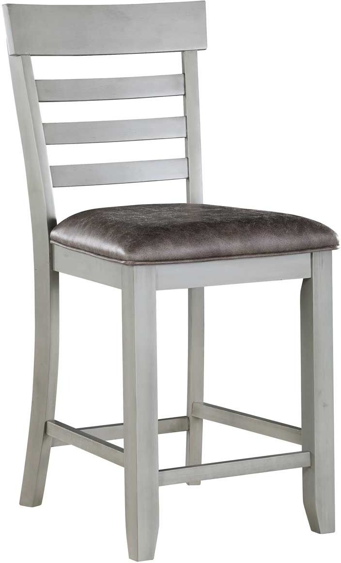An upholstered Counter Chair that sports a stone gray finish and vegan rawhide seat to make a stylish and comfortable addition to any kitchen or dining area. The horizontal slatback design features a shaped top rail for a relaxed transitional appeal.Read More
